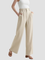 Cut from smooth woven fabric, these trousers feature a high-rise waist and wide-leg silhouette that elongates the figure with ease. The structured waistband and side pockets balance practicality with refined tailoring, making them suitable for both office wear and evening occasions. A versatile staple that transitions naturally across seasons. Cold wash or dry clean keeps the fabric crisp.