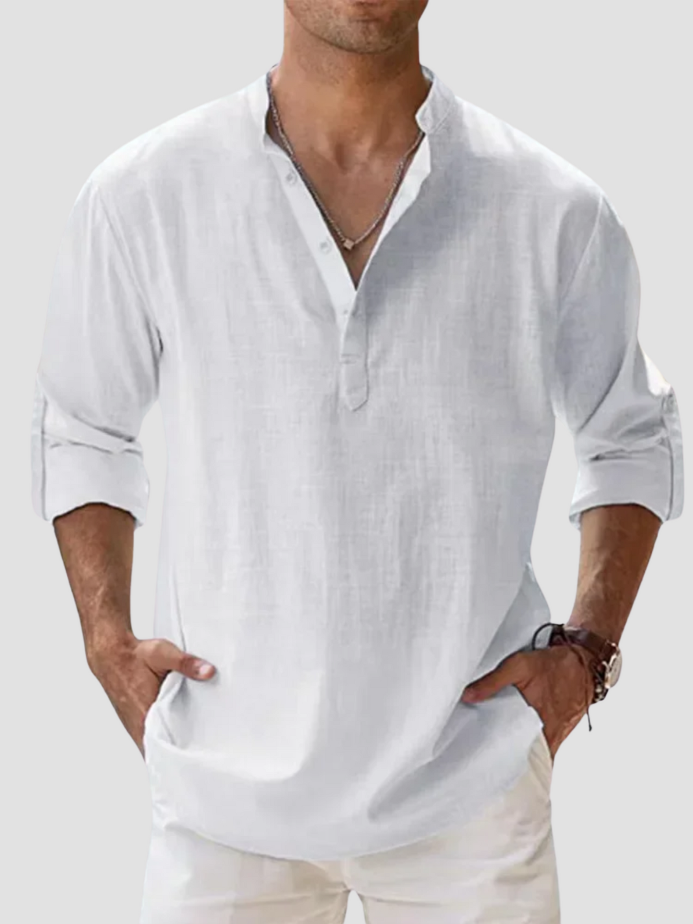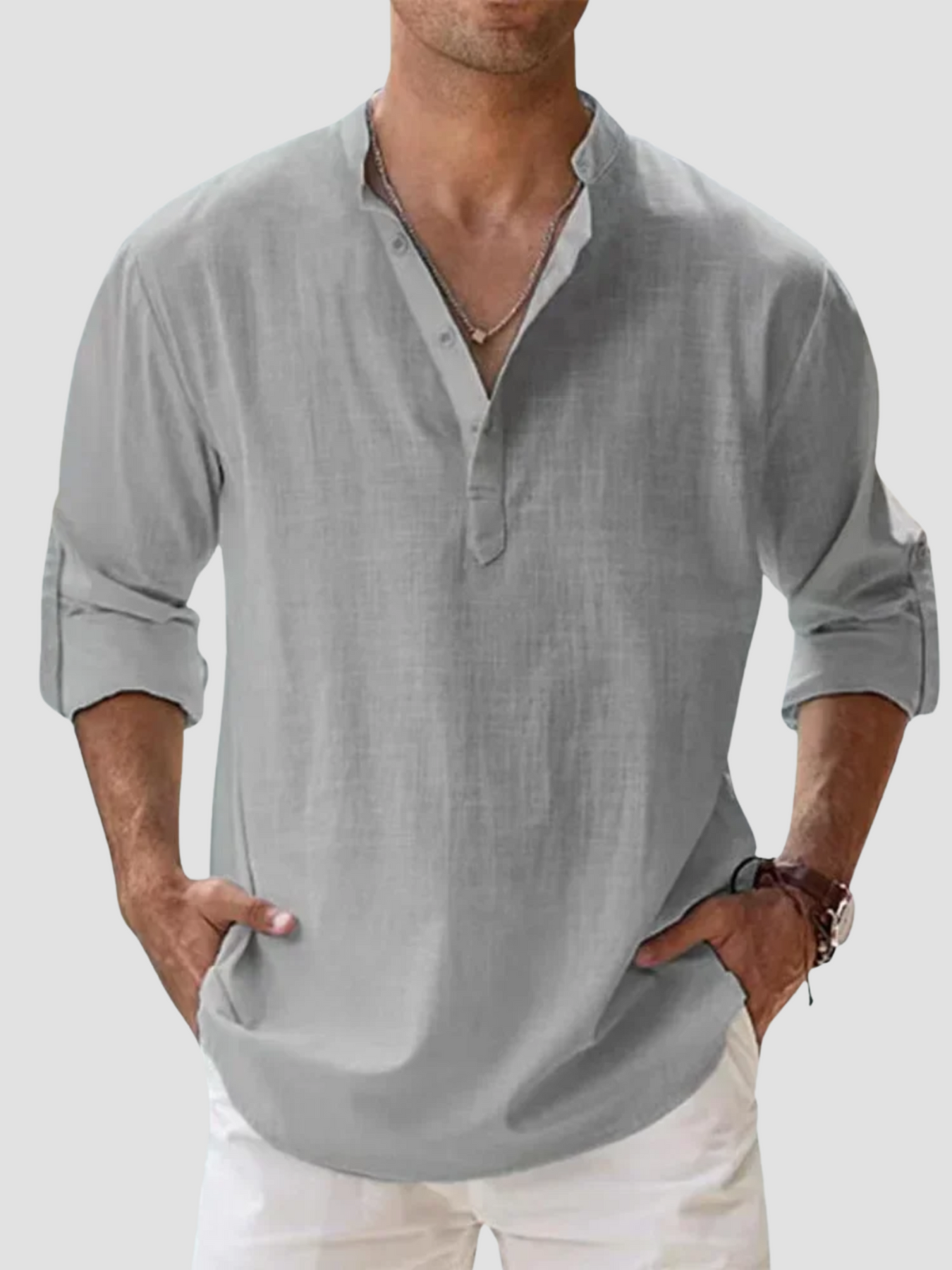 • Cuello Henley con Botonadura – Aporta un toque casual-elegante adaptable a distintas ocasiones.