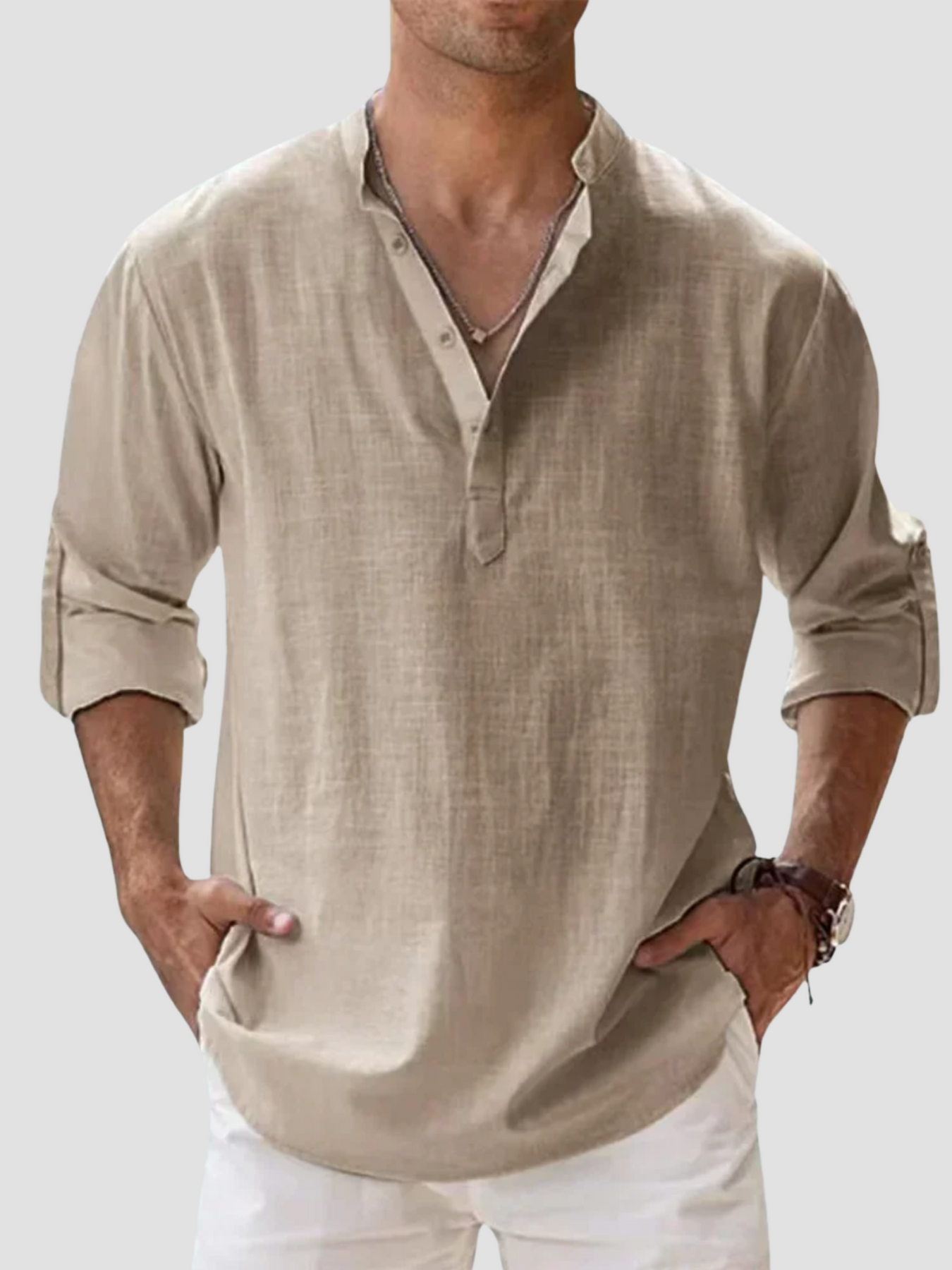 DORADO | CAMISETA HENLEY LARGA | ESTILO CASUAL-ELEGANTE