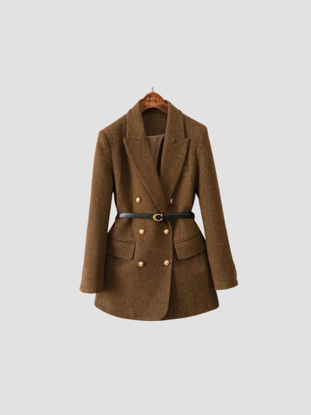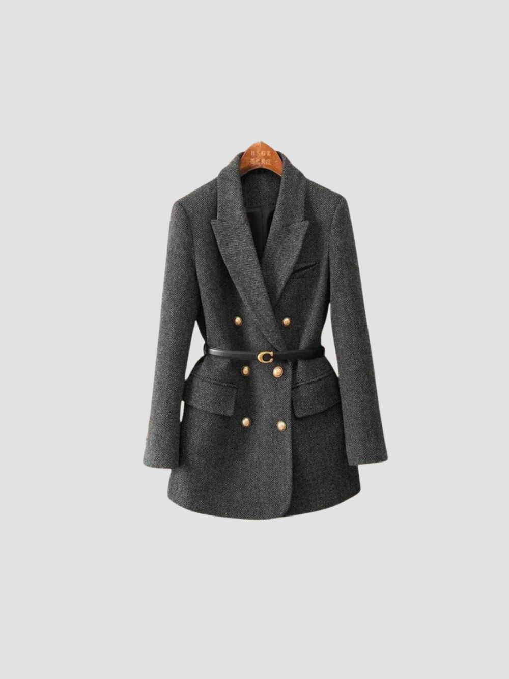 Confeccionada en una mezcla de lana cálida, esta americana ofrece una caída refinada con comodidad suave pero estructurada. El corte entallado se realza con un cinturón en la cintura, solapas anchas y botones dorados cruzados, creando una silueta poderosa y femenina. Perfecta sobre blusas para el trabajo o como prenda exterior en los meses frescos, se adapta fácilmente tanto a entornos profesionales como sociales. Limpieza en seco recomendada para conservar su forma y detalles.