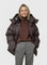 El acabado mate en tono moka y la capucha envolvente aportan un toque moderno, mientras que su corte relajado combina funcionalidad y estilo.