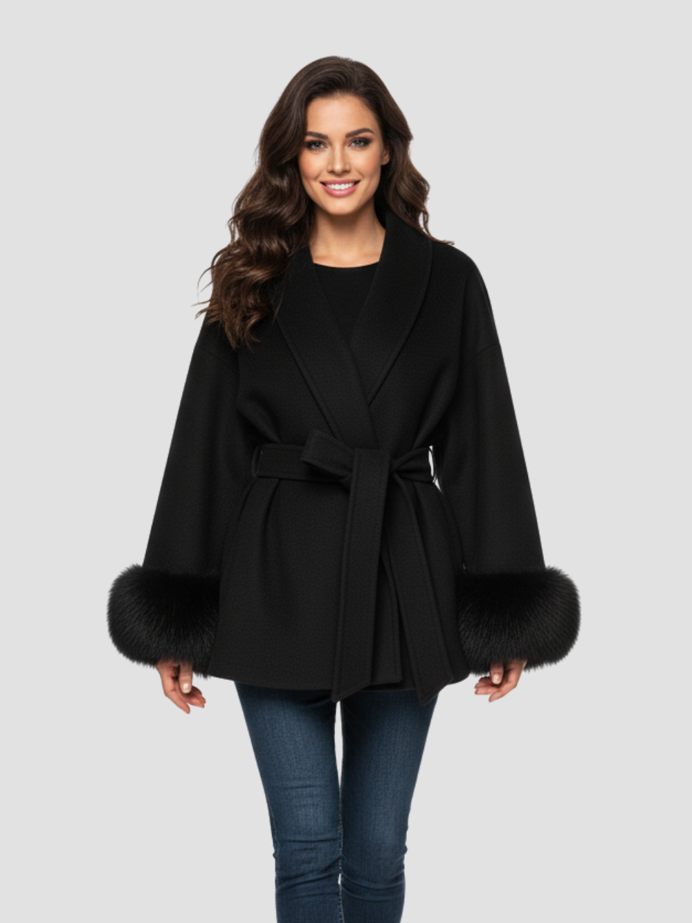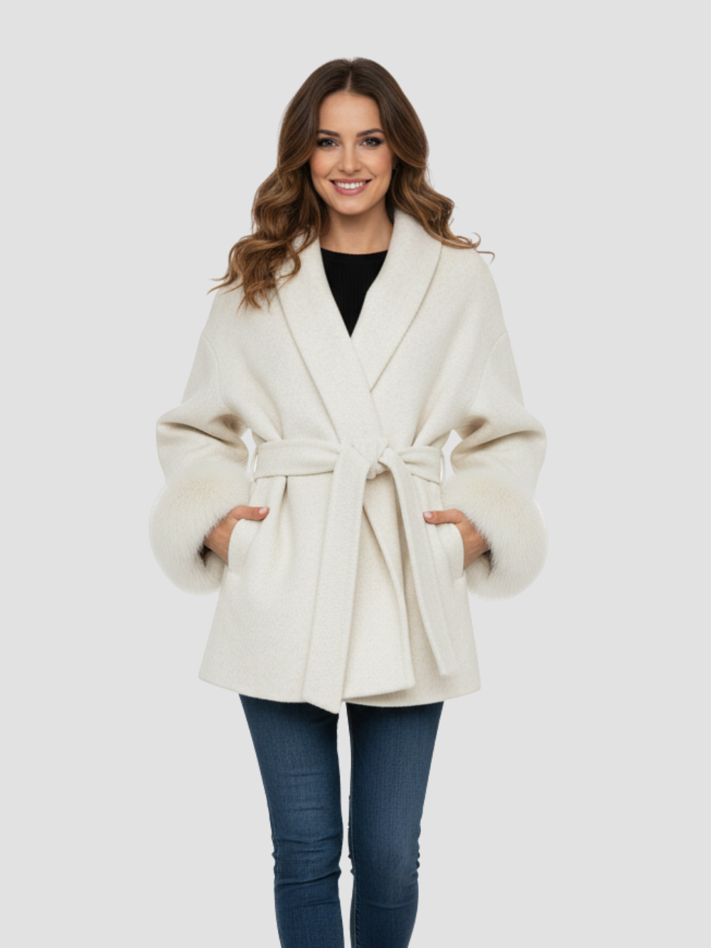 AVERLINE | ABRIGO DE MUJER CON CINTURÓN Y PUÑOS DE PELO – CALIDEZ Y DISTINCIÓN