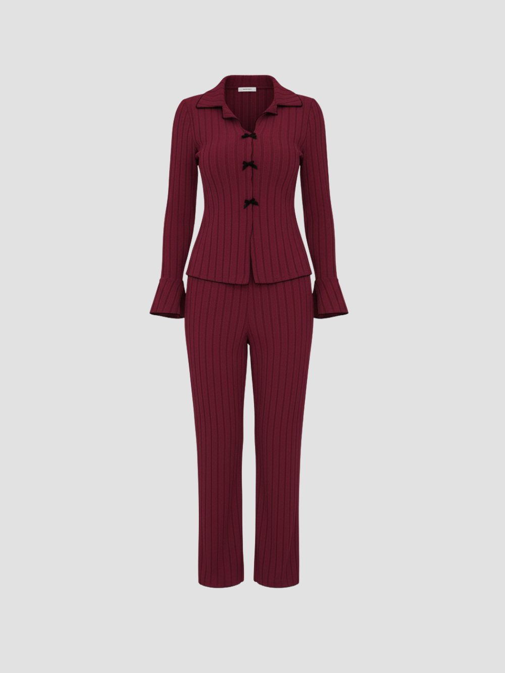 Relájate con estilo gracias al conjunto de pijama Seraphina. Confeccionado en un suave tejido acanalado con elasticidad, brinda un ajuste cómodo y delicado al contacto con la piel. La parte superior destaca por sus elegantes botones con nudo y un corte femenino favorecedor, mientras que el pantalón de pierna recta ofrece total libertad de movimiento. Perfecto para noches acogedoras y mañanas tranquilas en casa.