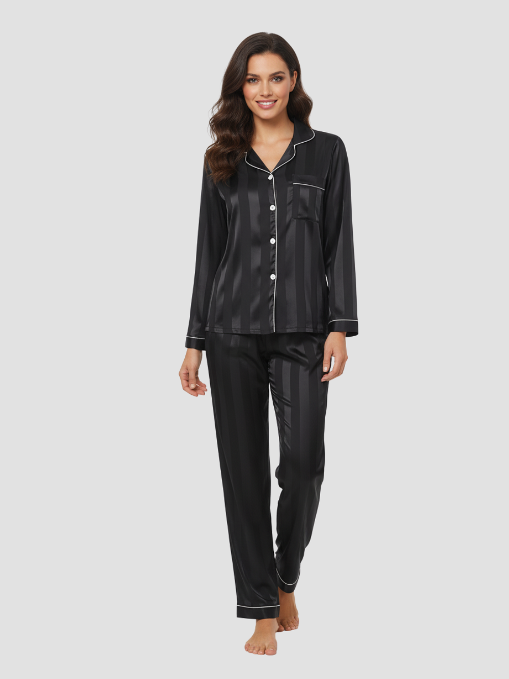 SERENIQUE | PIJAMA DE MUJER EN SATÉN – ESTILO CLÁSICO CON BRILLO ELEGANTE