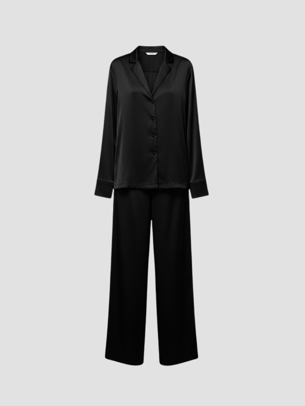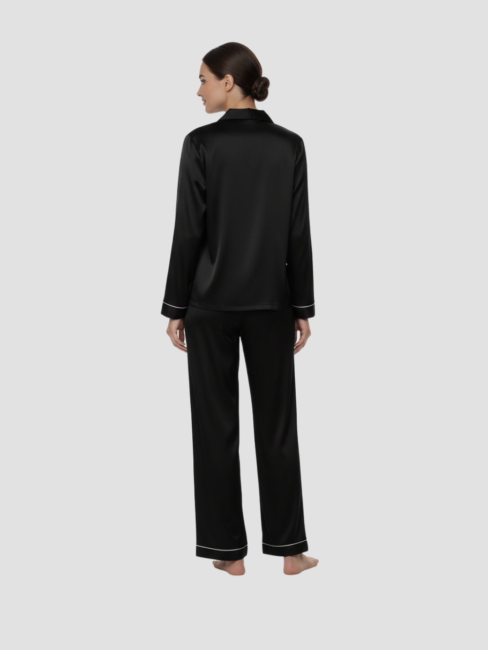 VELORA | 2PCS PIJAMA SATINADO DE MANGA LARGA – ELEGANCIA CLÁSICA Y CONFORT SUAVE