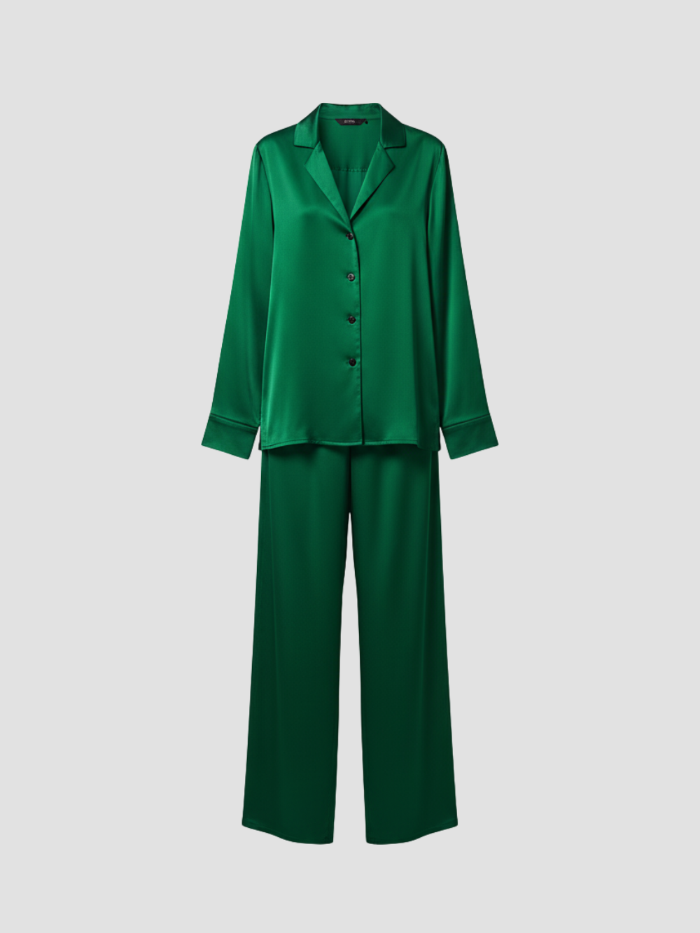 Velora | 2pcs Pijama Satinado De Manga Larga – Elegancia Clásica Y Confort Suave