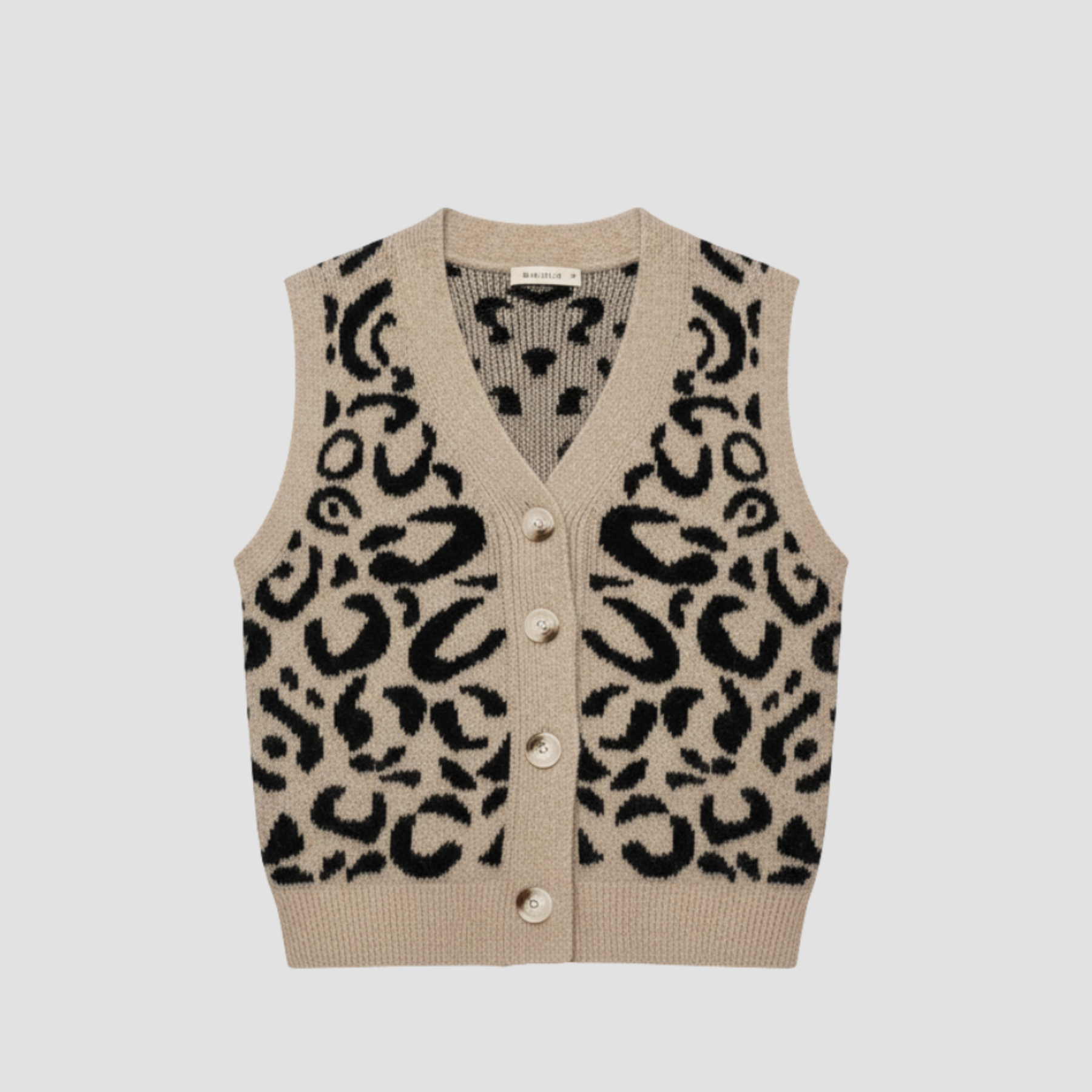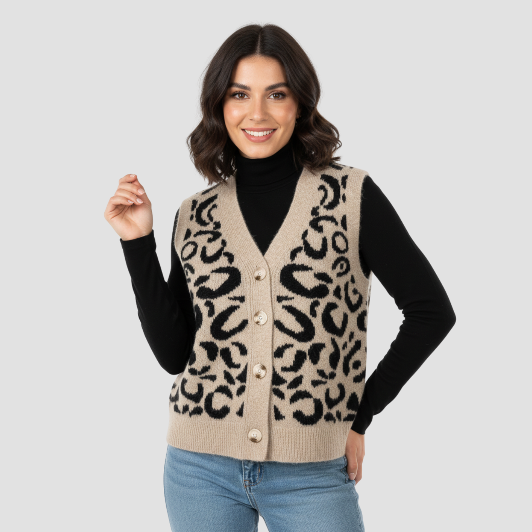 LIONNELLE | CHALECO DE PUNTO CON BOTONES PARA MUJER – ESTAMPADO SALVAJE Y SUAVIDAD ATEMPORAL