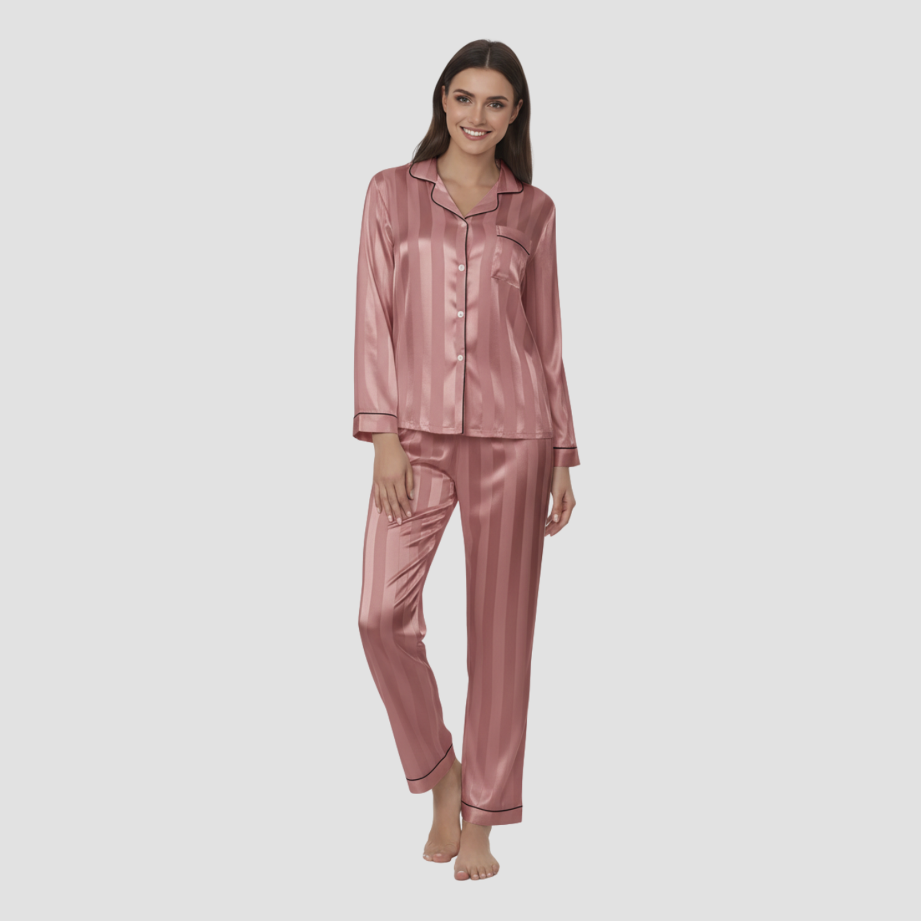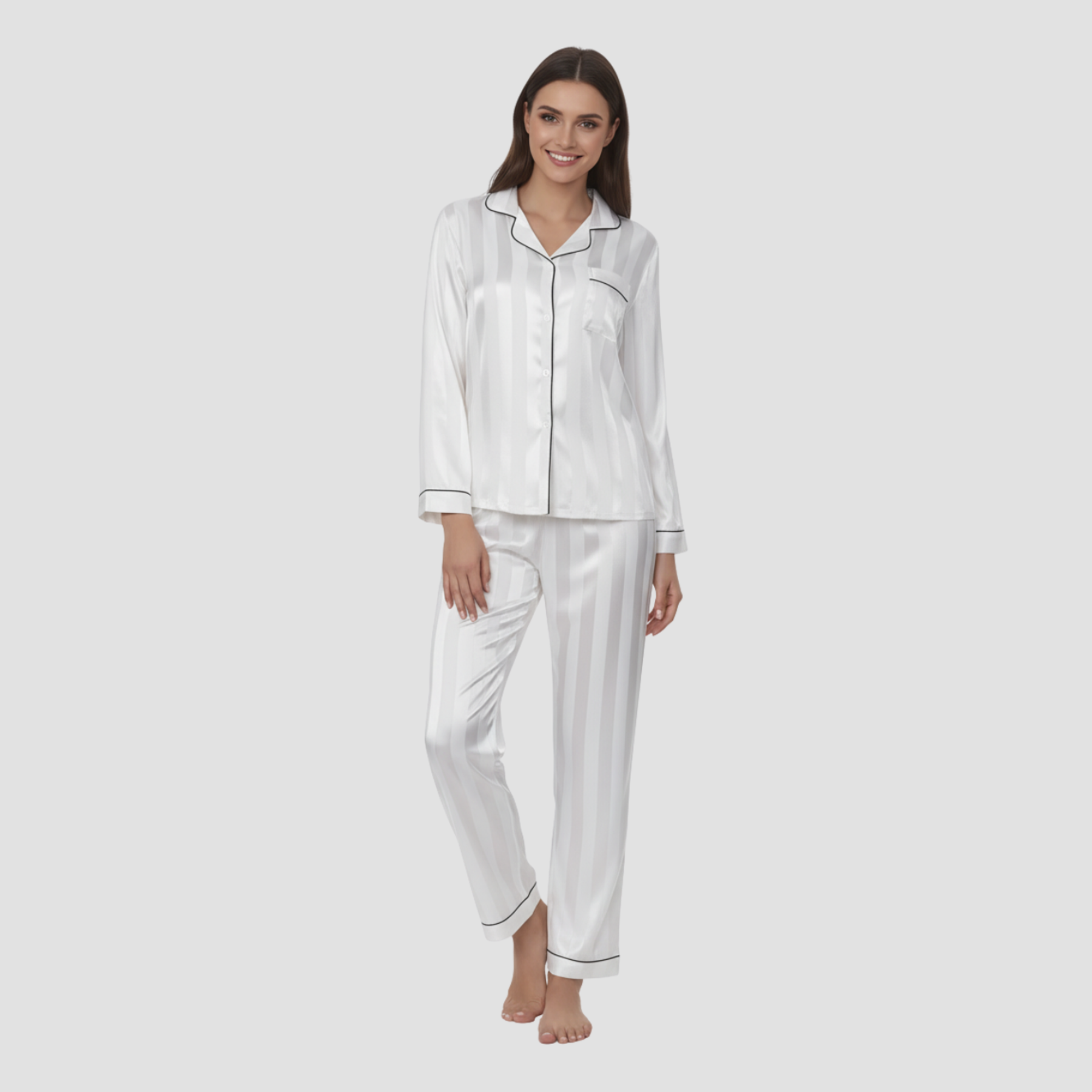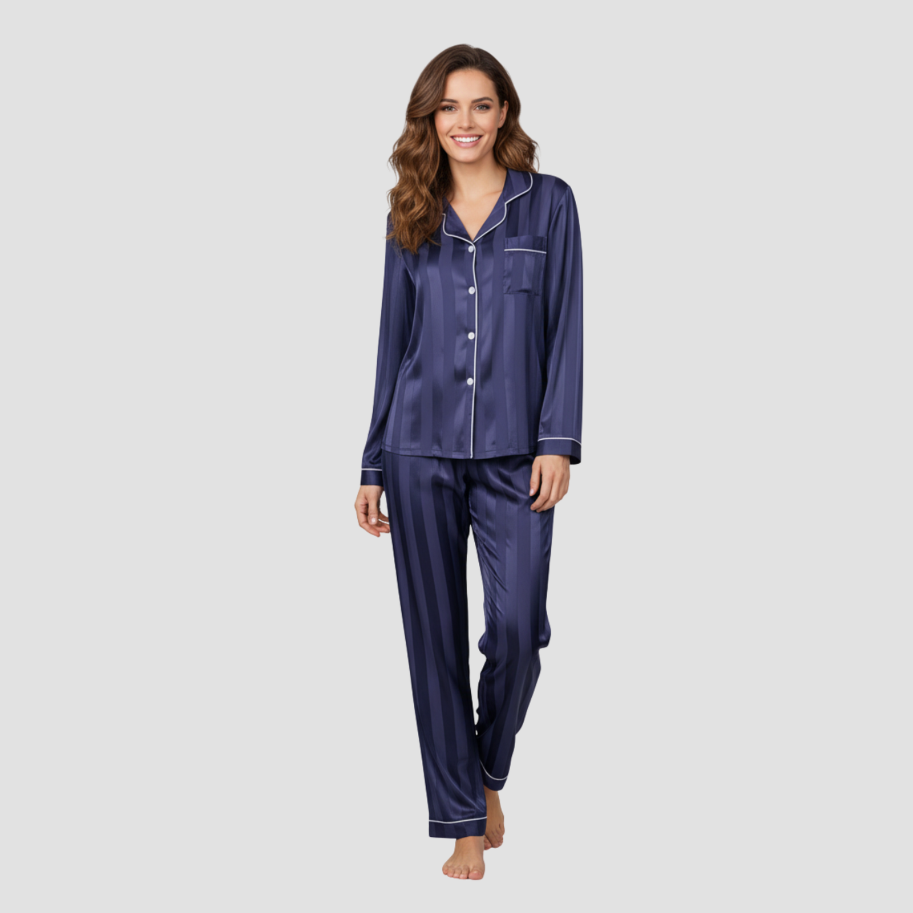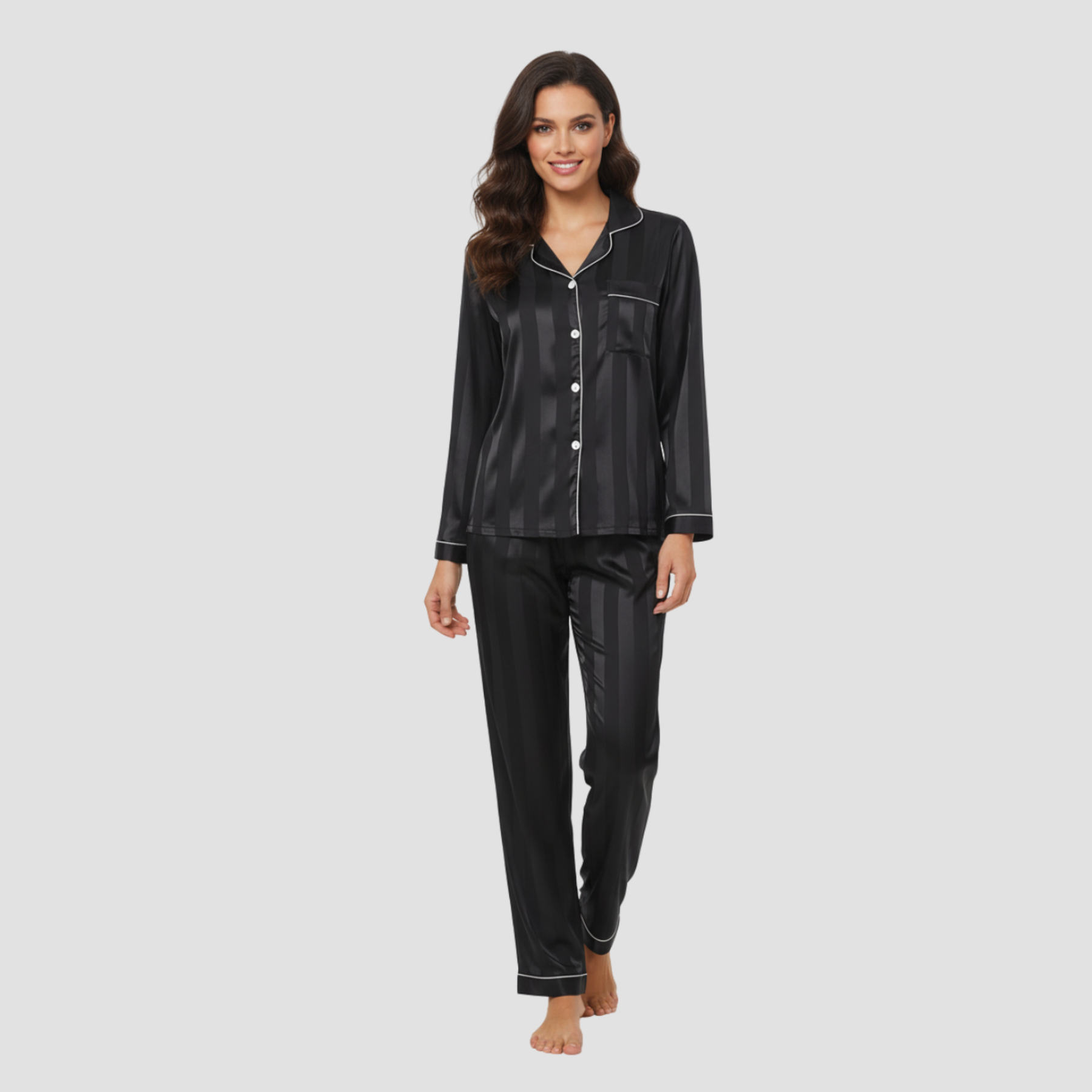 SERENIQUE | PIJAMA DE MUJER EN SATÉN – ESTILO CLÁSICO CON BRILLO ELEGANTE