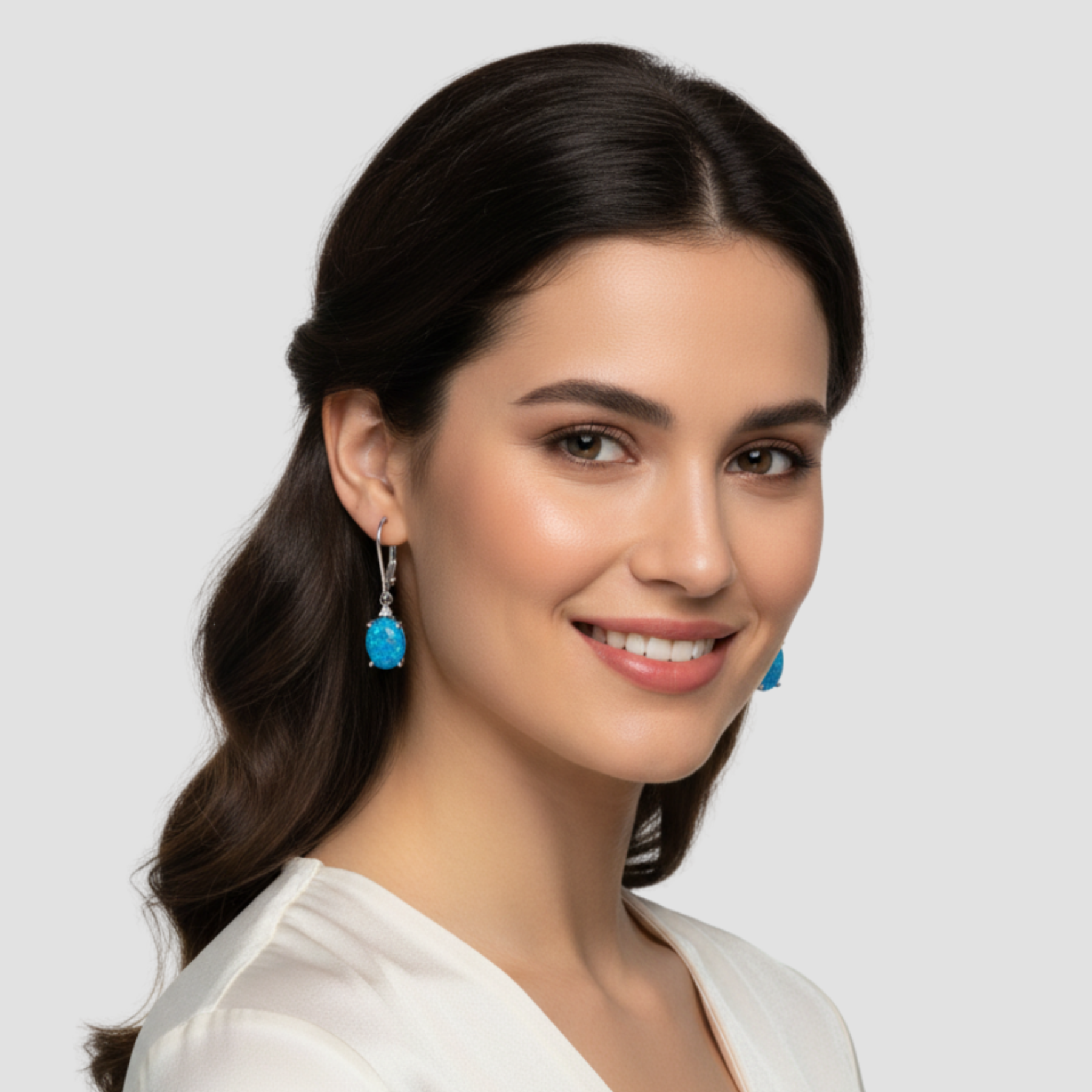 Aurelise de Ópalo Colgante en Plata S925. Con un deslumbrante ópalo tallado en forma redonda que brilla con tonos azules vibrantes, estos pendientes añaden un destello refinado a cualquier estilo. Elaborados en plata de ley de alta calidad, ofrecen belleza atemporal y una sofisticación sin esfuerzo—ideales tanto para el uso diario como para ocasiones especiales.