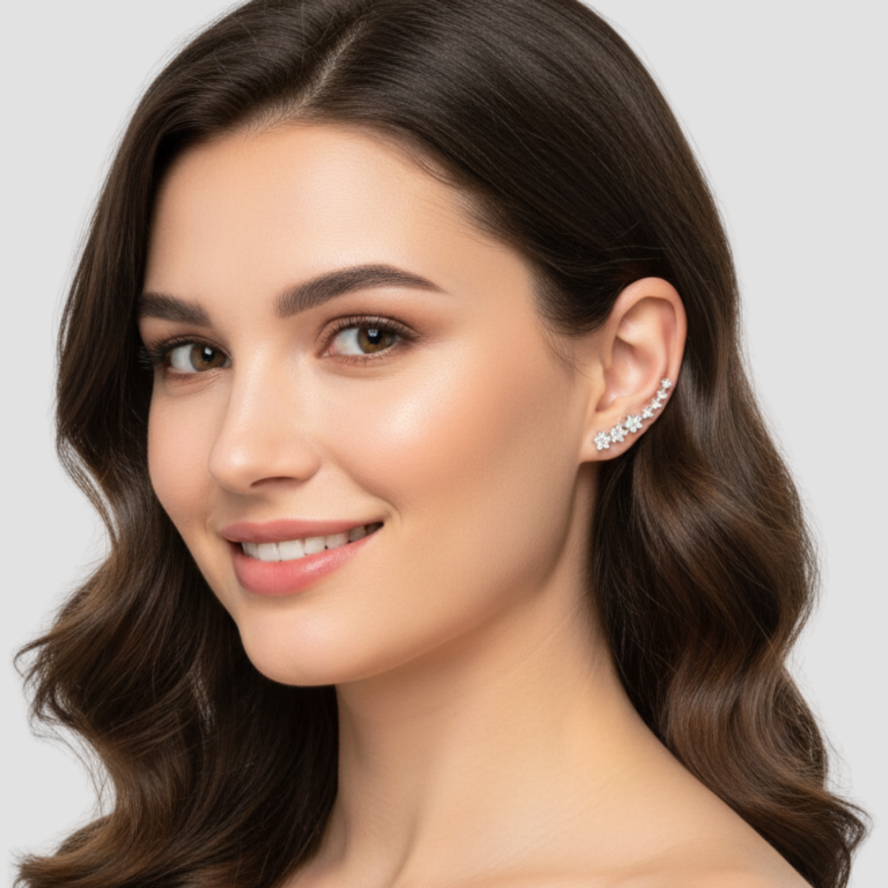 Los pendientes de aro Eloria aportan un toque de brillo refinado a cualquier colección de joyería. Elaborados en auténtica plata esterlina S925, cada aro está decorado con delicados motivos florales brillantes que forman una silueta luminosa y elegante. Ligeros pero llamativos, ofrecen el equilibrio perfecto entre sofisticación y encanto, ideales para ocasiones especiales, noches románticas o para elevar tu estilo diario con un toque de lujo.