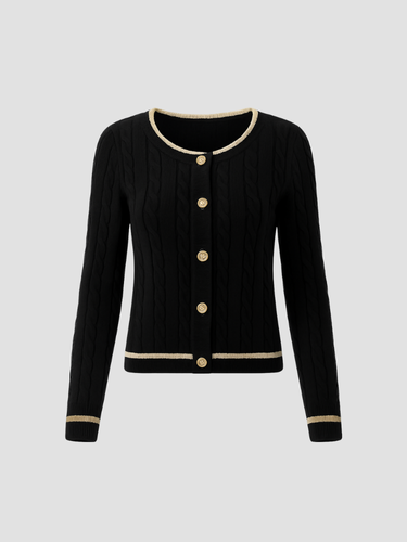Marisol | Cárdigan de Punto con Ribetes Dorados para Mujer – Elegancia Refinada para Todo el Año