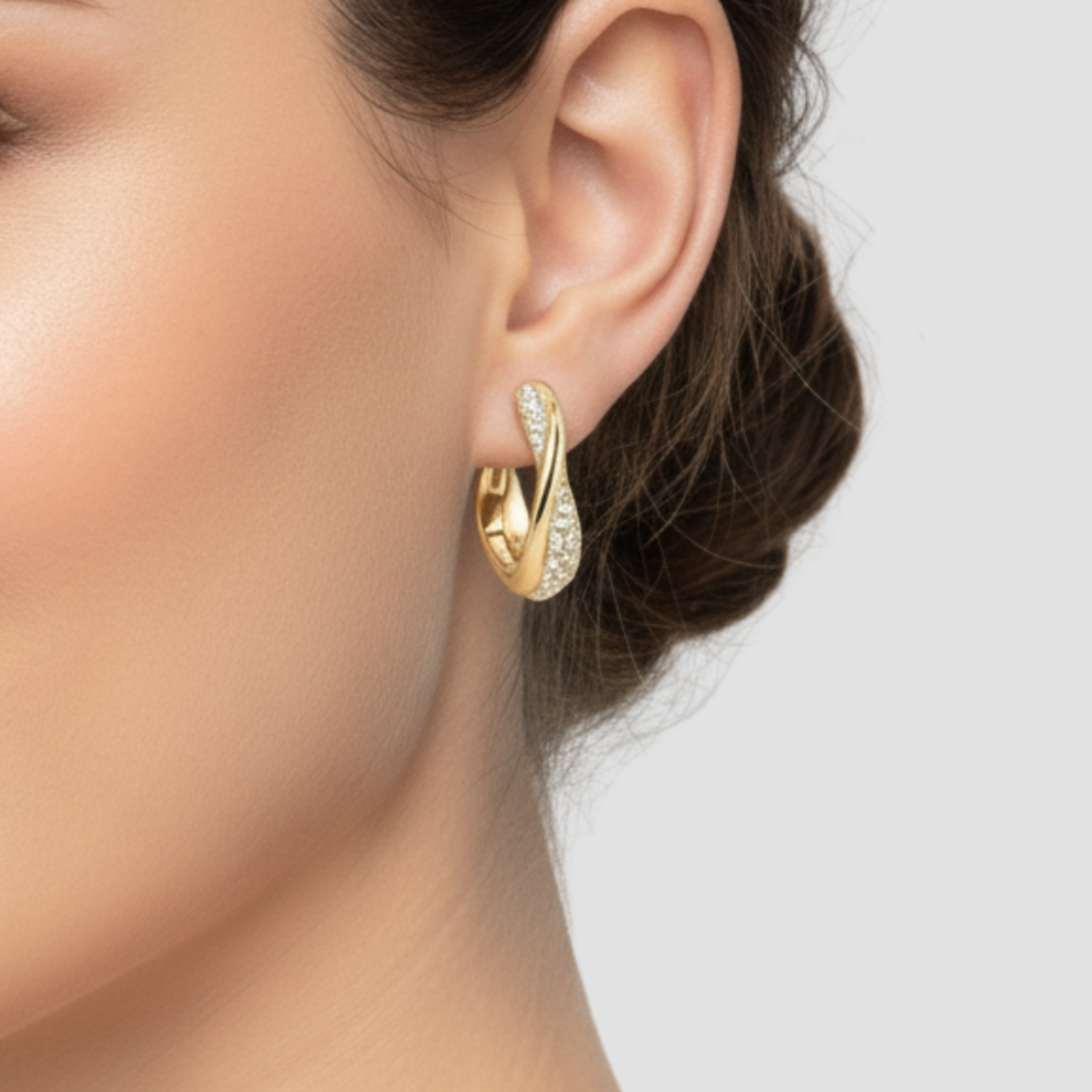 SOLAYNE | PENDIENTES DE ARO ENTRELAZADO DORADO – DESTELLO PAVÉ Y SOFISTICACIÓN ATEMPORAL