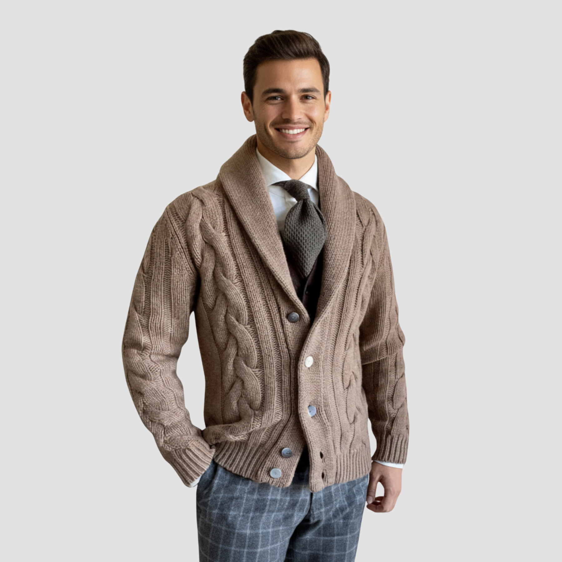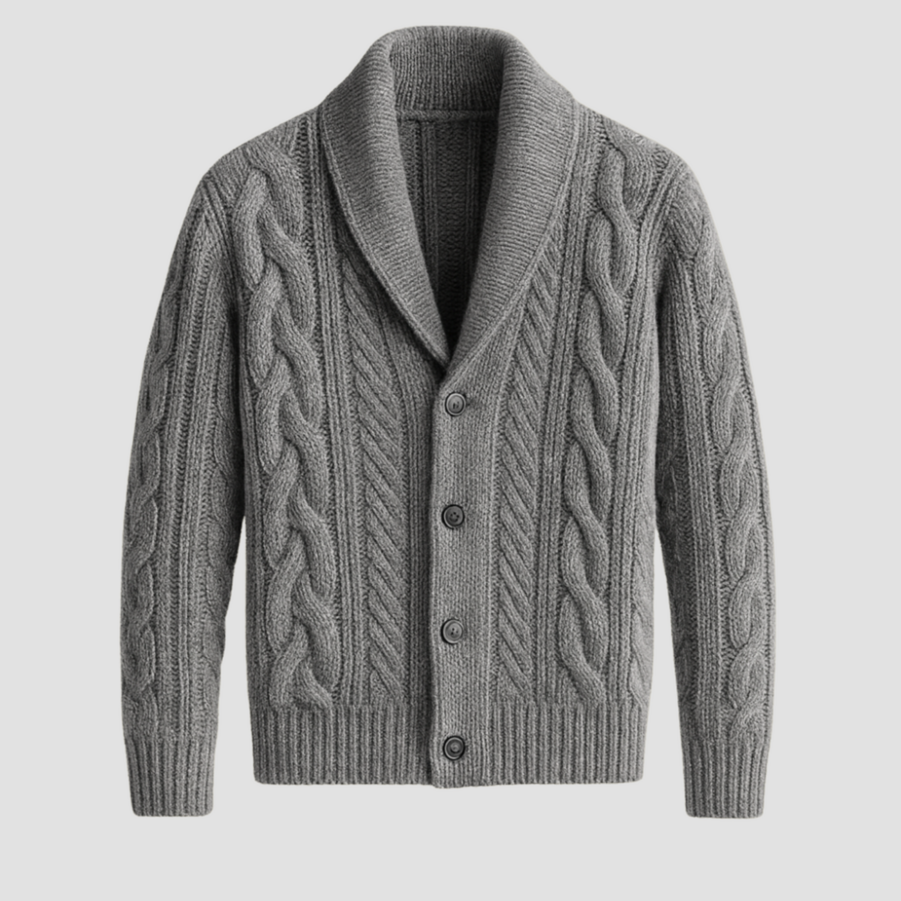 VALDIVIA stands out with its cable-knit design and shawl collar, offering the perfect blend of casual elegance and comfort. Ideal for layering on cold days and elevating any outfit.